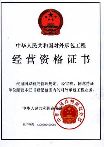 正式獲得商務部頒發的對外經濟合作經營資質資格證書。